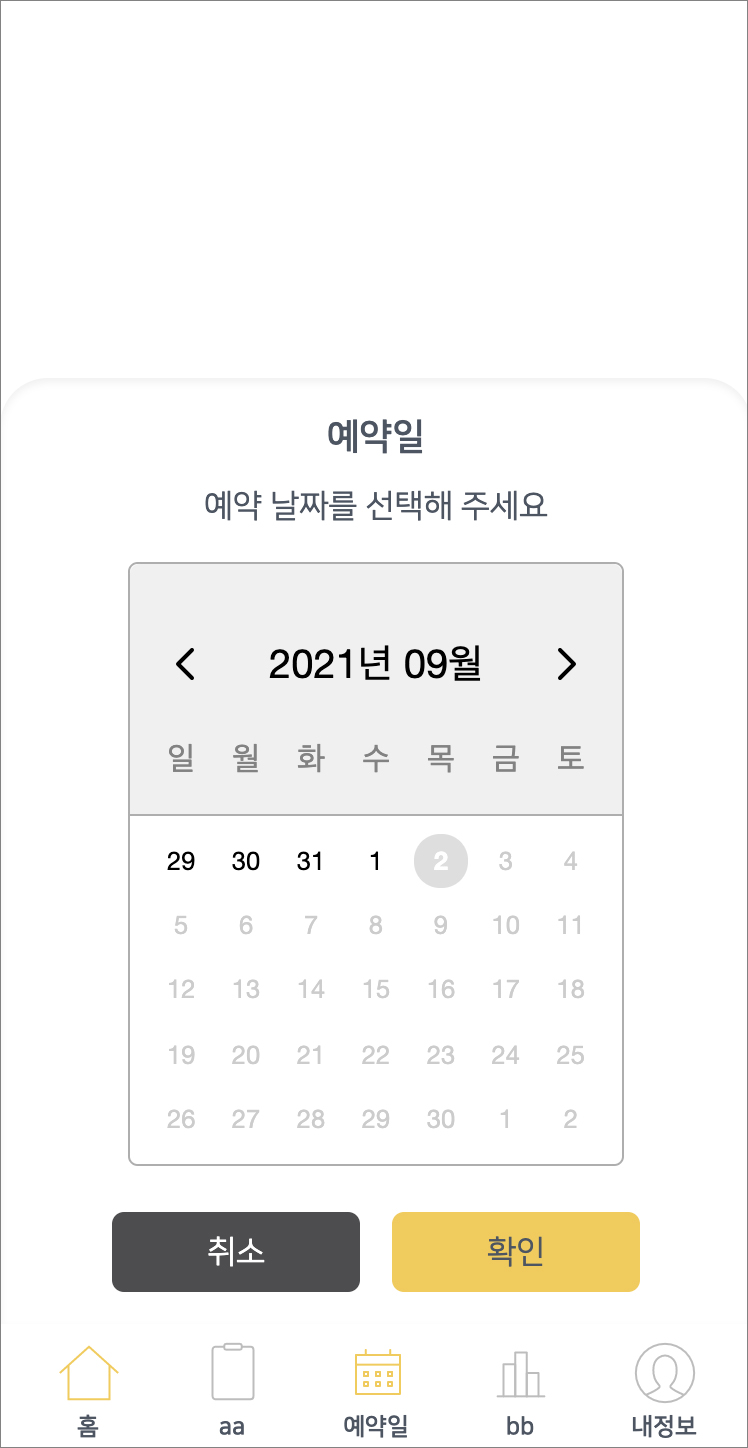 - datepicker에서 날짜 클릭 후 확인 선택시 예약일 저장, 취소시 datepicker 닫기