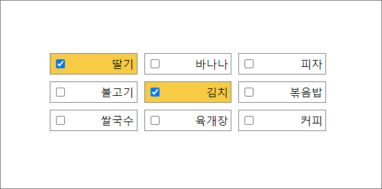- 체크 박스 토글 기능(한번 클릭 선택, 두번 클릭 취소)
